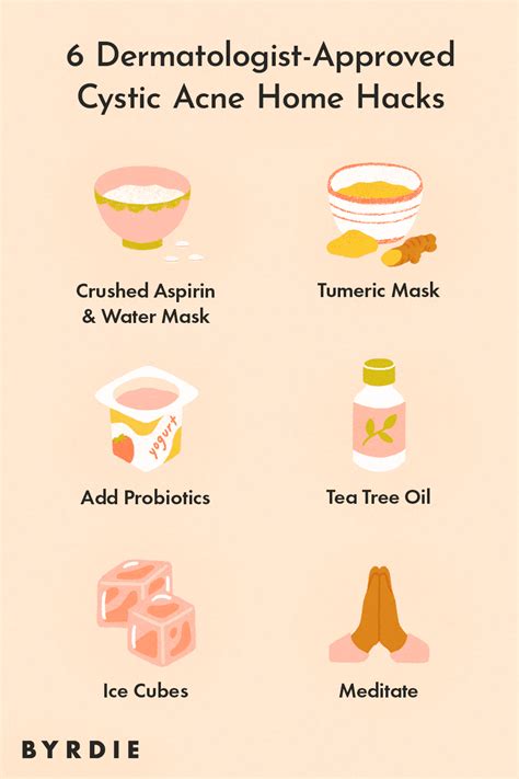 Crush up an aspirin tablet, and mix it with water to make a paste. Then, apply it directly to a cystic pimple, Zeichner explains. Aspirin is a cousin to salicylic acid and may help calm inflammation and pain. (However, he tells us it won't nix excess oil.)